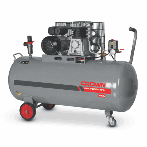 მაღალი სიმძლავრის, დიდი ჰაერის კომპრესორი Crown-ისაგან, რომელიც მცირე და საშუალო საწარმოშიც კი გაუძლებს დიდ დატვირთვას. აქვს 200 ლიტრიანი ავზი, რის ხარჯზეც ხანგრძლივი დროის განმავლობაში იქნება მუშა მდგომარეობაში, შეუფერხებლად.